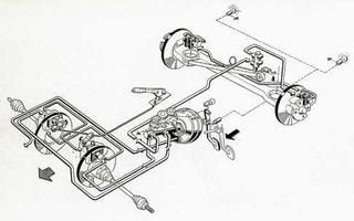 Dabei versorgt ein Kreis alle Räder, der zweite Kreis steuert zusätzlich die Vorderachse an. Die Vorderachsbremsen haben doppelte Bremszylinder, die unabhängig voneinander angesteuert werden. Im Falle des Ausfalls eines Kreises steht zumindest die Vorderachsbremse zur Verfügung.