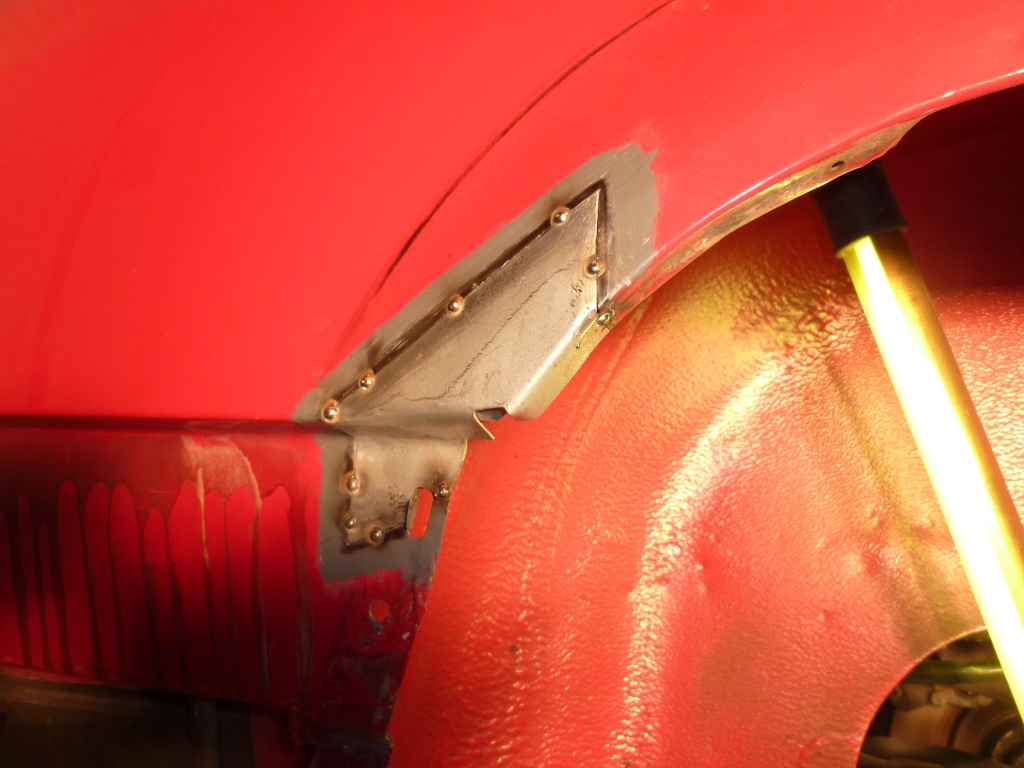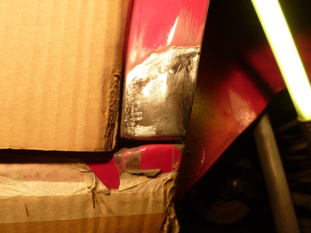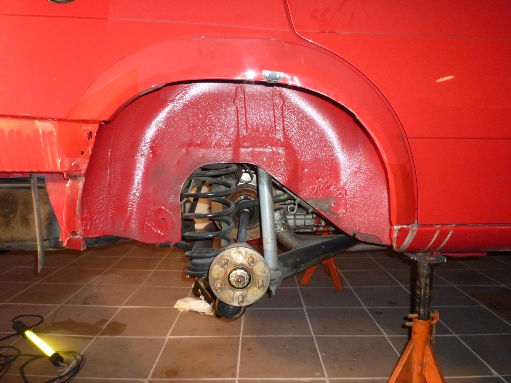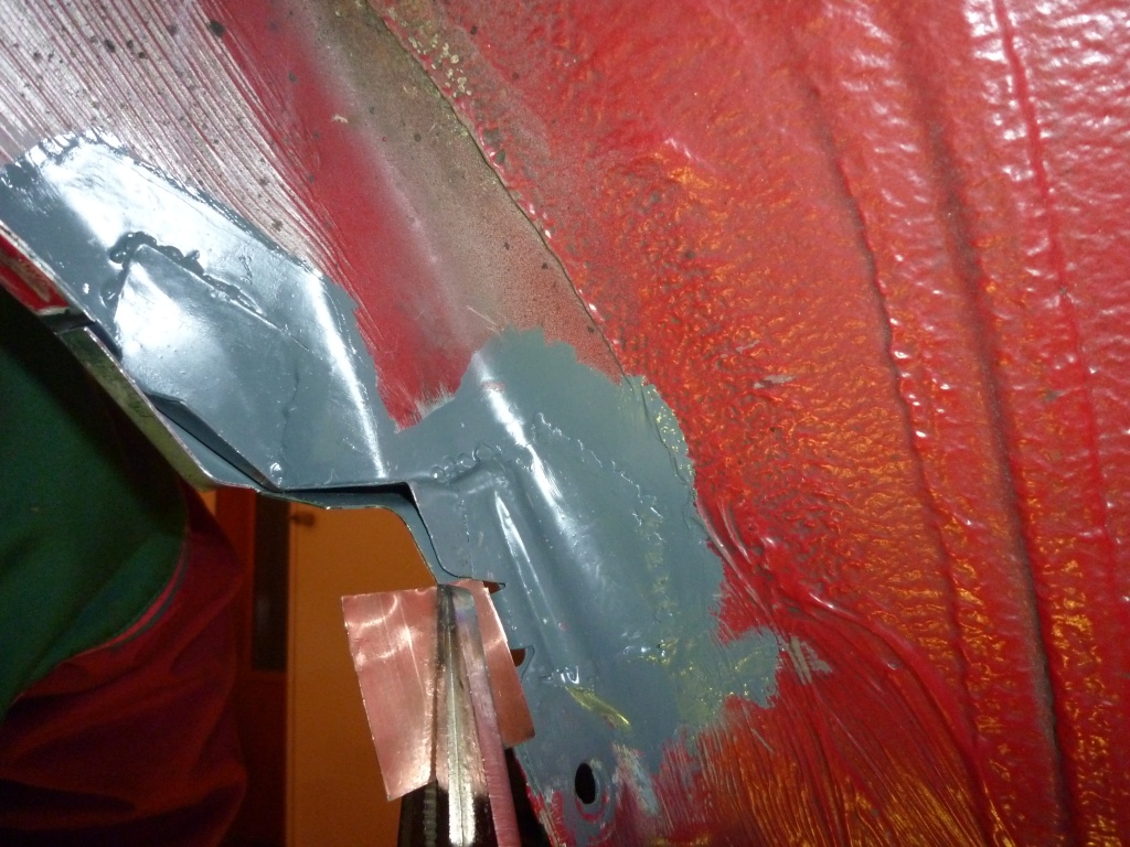 Kritisch sind nur die Stellen, an die ich nach dem Schweissen nicht mehr ran komme. Dies ist eigentlich nur beim hinteren, rechten Radlauf vorn der Fall. Da geh ich noch mit Mike Sanders Fett dahinter...
