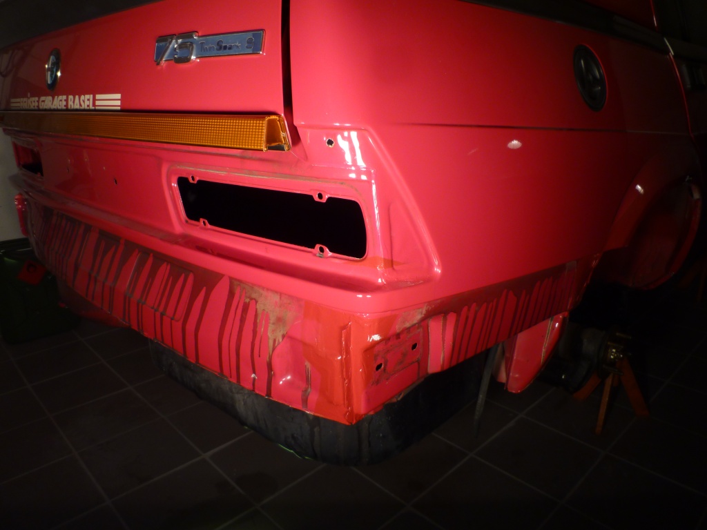 Auspuff und Kofferraum sind fertig und auch das Heck sieht langsam wieder nach 75er aus.