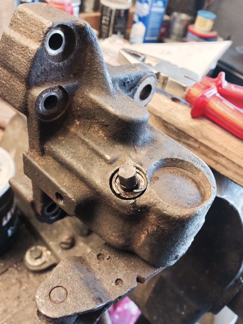 Hast du die Stellschraube auf der Sattelhälfte mit dem Handbremshebel auch ausgebaut? Weil auf dem Bild ist sie noch drin. Da sitzt auch ein Dichtring, der getauscht werden sollte.
