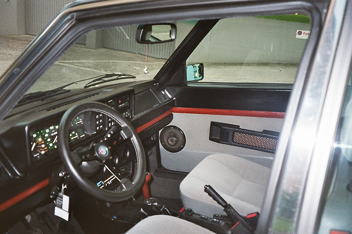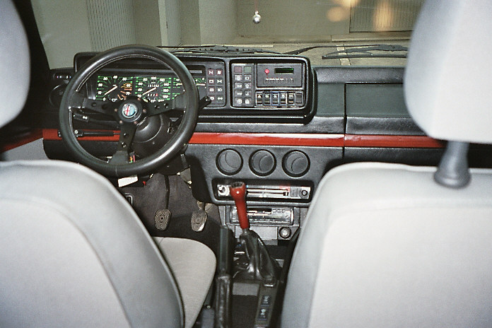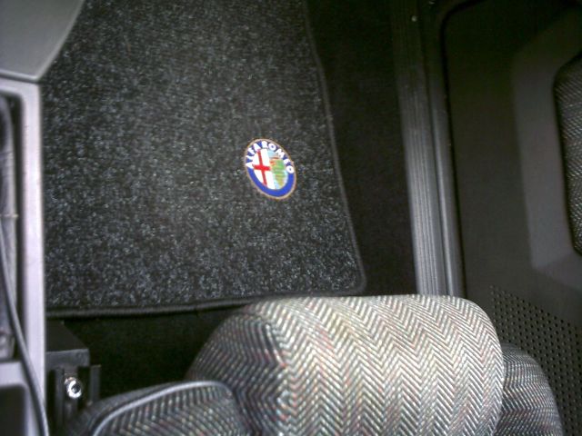 P4-Lenkrad, FSE und CD-Wechsler, Bordcomputer aus nem alten QV, schwarze Streifen auf den Rückleuchten rot überklebt, Fußmatten mit Alfazeichen und Motorraum ordentlich geputzt, auch die verschiedenen Behälter, vor allem von innen. (und auch schon wieder alles eingesaut)