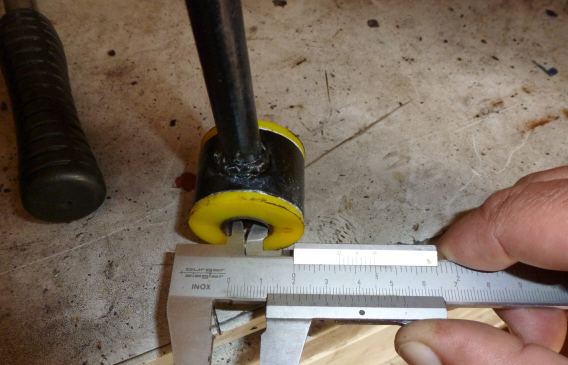 Dieselbe Metallbuchse konnte ich aber problemlos auf den Zapfen vom Querlenken stecken und Spielfrei drehen.