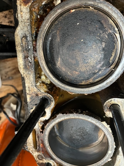 Zylinder 5 und 6 mit erheblichen Anhaftungen von auskristallisierten Frostschutz |