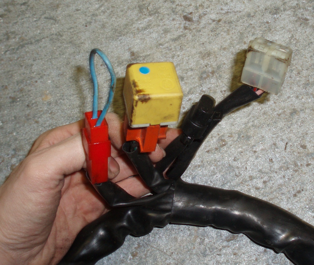 Hauptrelais mit Diode, Benzinpumpe und Zündspule.